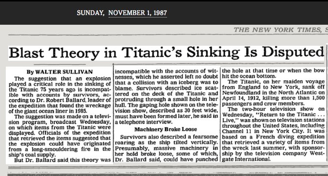 back to Titanic, here's Ballard being called in to go all Snopes on a crappy TV documentary in 1987 https://timesmachine.nytimes.com/timesmachine/1987/11/01/575687.html?pageNumber=33 …pic.twitter.com/p9FhKXP4TT