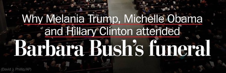 (This is actually an interesting history lesson Ill-served by a very bad headline https://www.washingtonpost.com/news/retropolis/wp/2018/04/21/barbara-bushs-funeral-why-melania-trump-michelle-obama-hillary-clinton-will-go/ …)