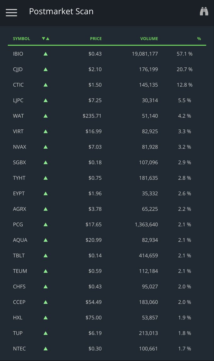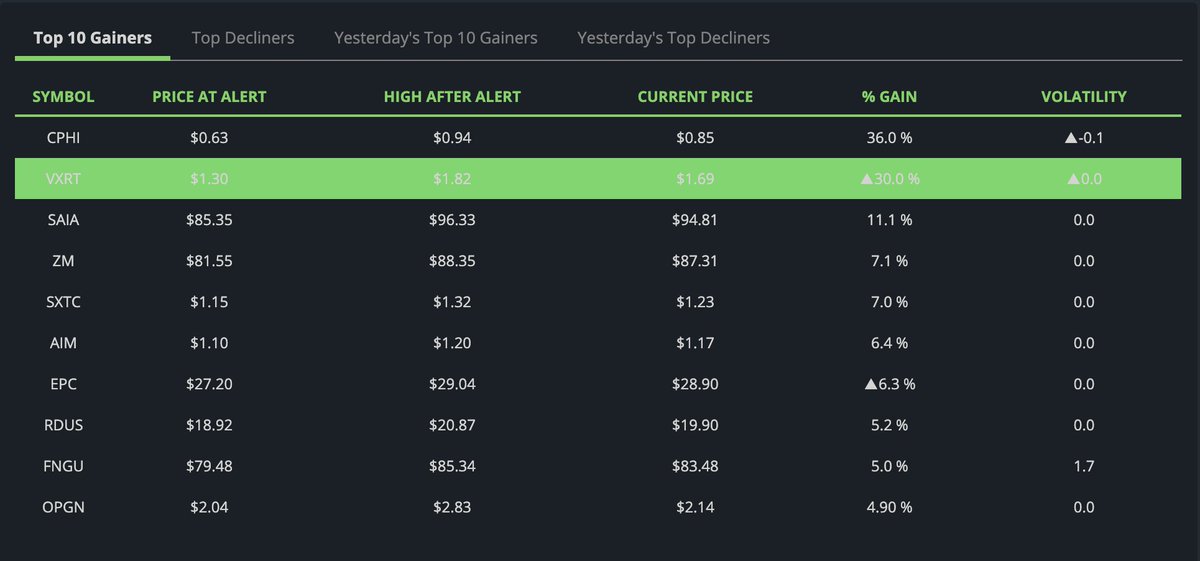 $CPHI$INSM$ARTL$OPGN$VXRT$SXTC$BIMI$UUUU$AIM$AVXL$TSLA$AMRS$ZM$PCG