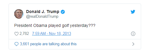 Trump criticized Obama for golfing during the 2013 tornado outbreak, during Ebola outbreak and soon after 2016 Louisiana floods. Today, the U.S. embassy in Iraq has been stormed. Trump just arrived at his golf club.pic.twitter.com/o7b7JoqI39