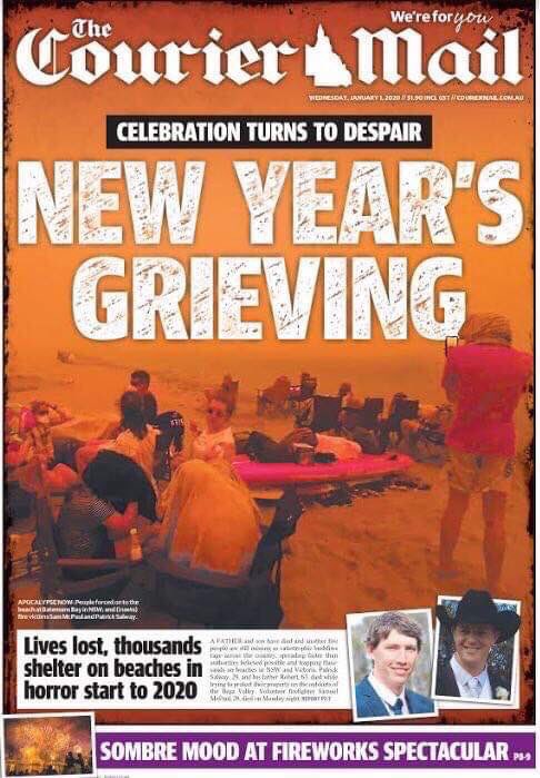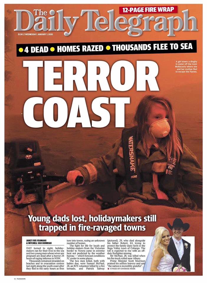 #ClimateEmergency is front page everywhere on the first day of this new decade. Our hearts go out to the families who have lost loved ones in the climate-fuelled bushfire catastrophe, the hard-working firies and all affected communities. Stay safe everyone#AustraliaBurnspic.twitter.com/xdsf2w8TWD