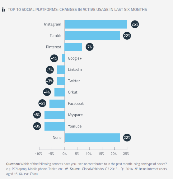 @pamdyer: Latest social network usage stats: Facebook + Twitter down, Instagram up 25% http://pamdyer.us/1jGUTLj#smm pic.twitter.com/eBG6KSjPgY”