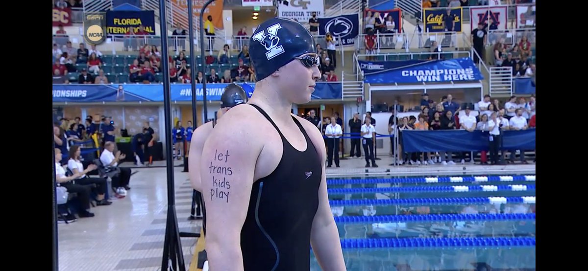 Yale’s Iszac Henig with a message on his arm ahead of the 50y B Final at NCAA Swimming Championships. “Let trans kids play”pic.twitter.com/45ge6fCRD3