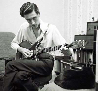 @DrBrianMay with his homemade Fabry-Pérot Spectrometer, the Red Special. Note the disk magnets in the pickups and the custom pulse-counting electronics. Image: Brian May Archivepic.twitter.com/IF0sBMp3Nu