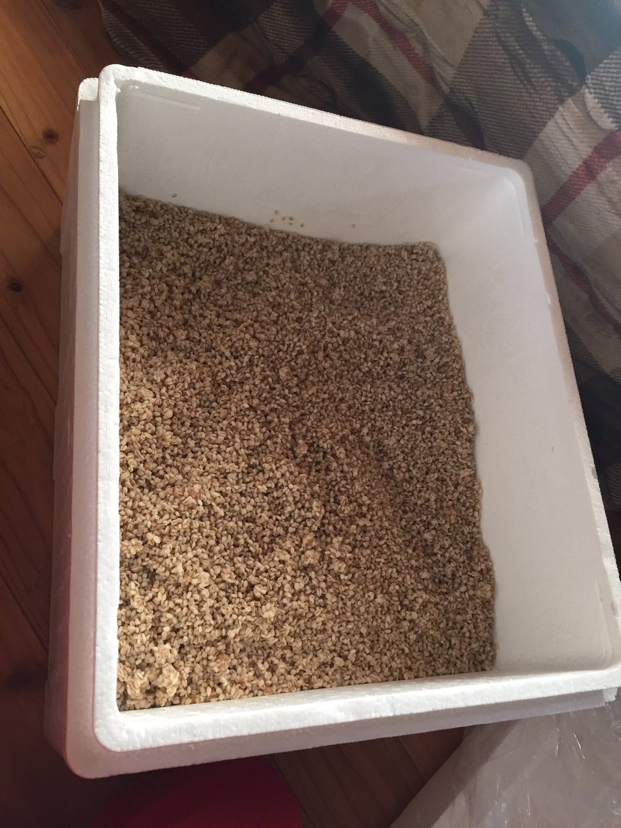 麹の香りが部屋中に広がる。今回は二升のハダカムギを麹にした。結構コクゾウムシにやられてるので粒が砕けてる。そのせいか麹の繁殖が早く、終わりも早い。pic.twitter.com/UwULTHqKLf