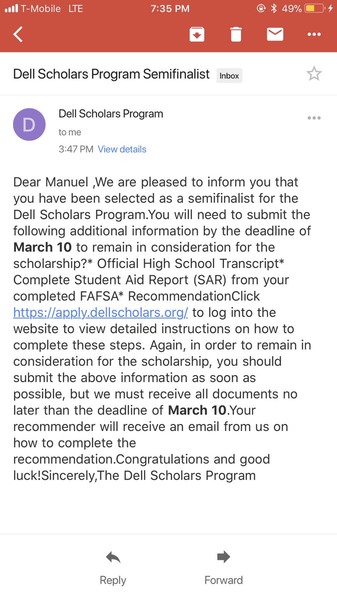 So blessed to be a semifinalist for the Dell Scholars Program!