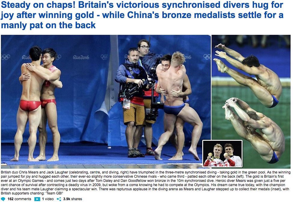 @BBC doesnt want men kissing.@DailyMailUK sneers @ divers.@NicoHines &@dailybeast catfish gay athletes. WTF UK.pic.twitter.com/UoZHgB0qKJ