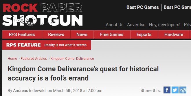 Czech studio dedicates itself to crafting a different kind of RPG, featuring historical accuracy. Sells a million copies. Will likely sell another couple million when it goes on sale. RPS calls it "a fool's errand". Brilliant.pic.twitter.com/urG5TsAIU9