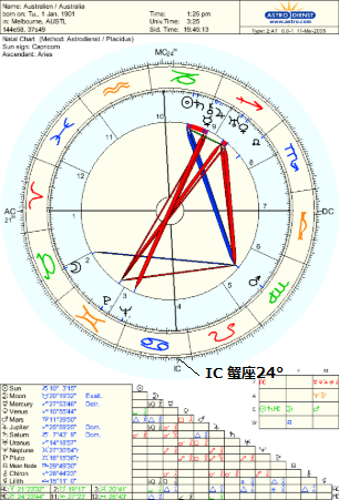 去年の7月17日(京アニ放火事件の前日)に 山羊座の24°で月食があった。 その山羊座の24°が、森林火災で焦土の広がるオーストラリアの始原図のMCの度数になる、という話を先日した。 その「山羊座の24°」は、英国メーガン妃のアセンダントの度数になる