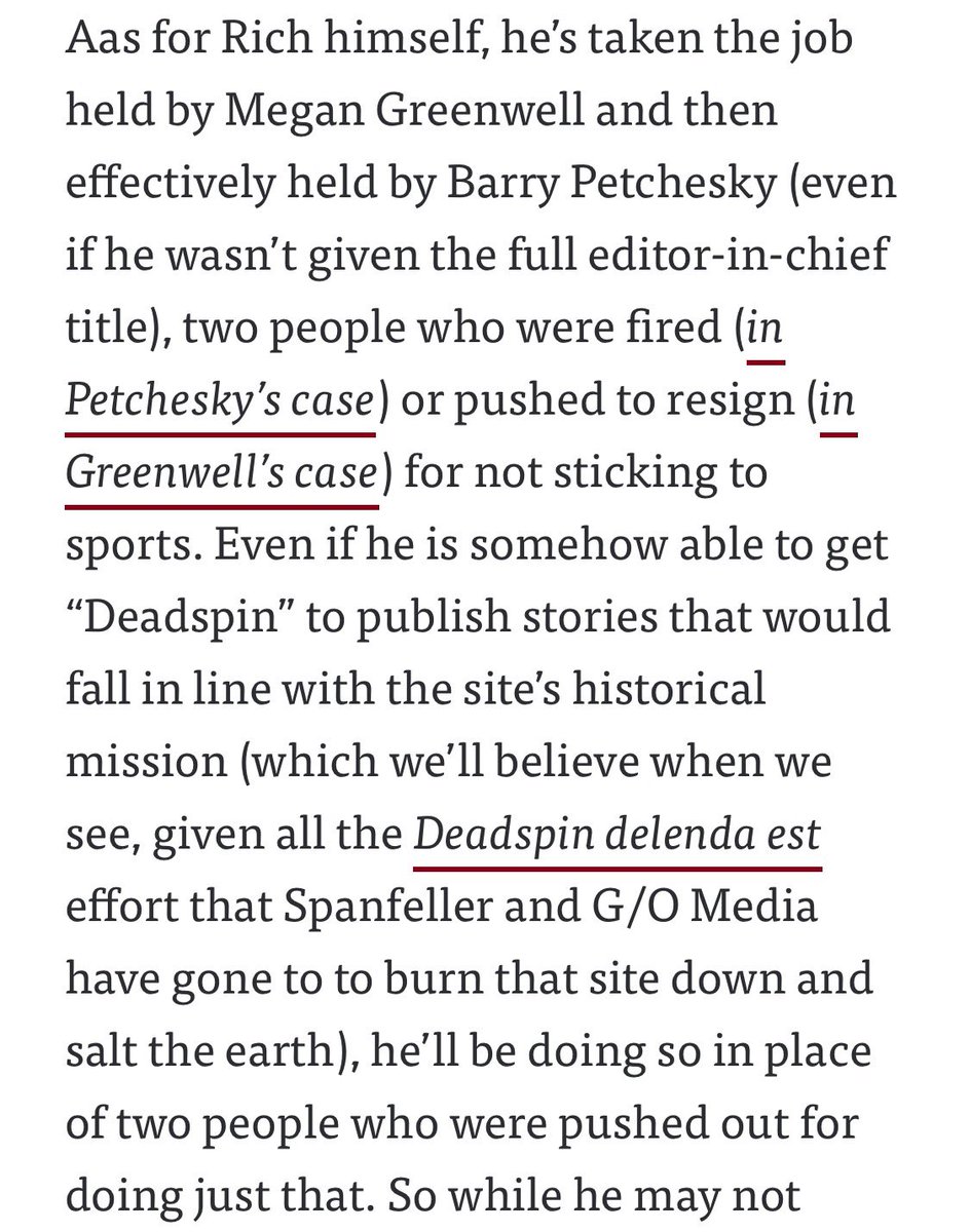 Here's a list of all the absurdly talented Deadspin people on the job market, and a little to recommend each of them:https://medium.com/@megreenwell/deadspin-was-a-good-website-1a464e350f6 …