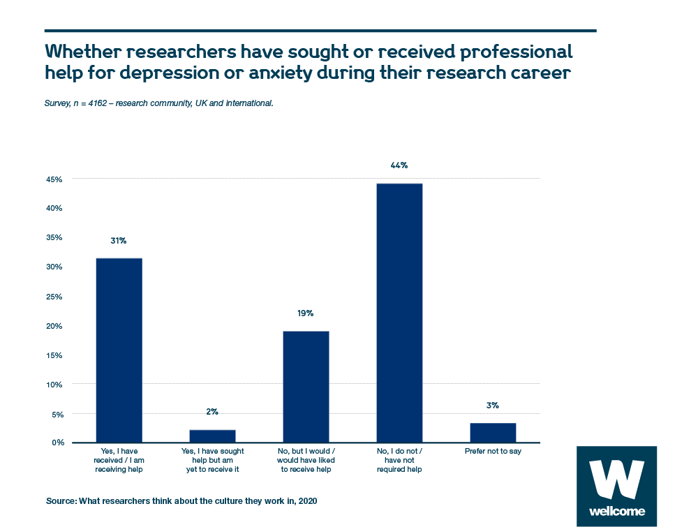 'Just over half of researchers (53%) have sought, or have wanted to seek, professional help for depression or anxiety.’ Can we stop talking about ‘mental health’ in academia as stress only and start having productive conversations?