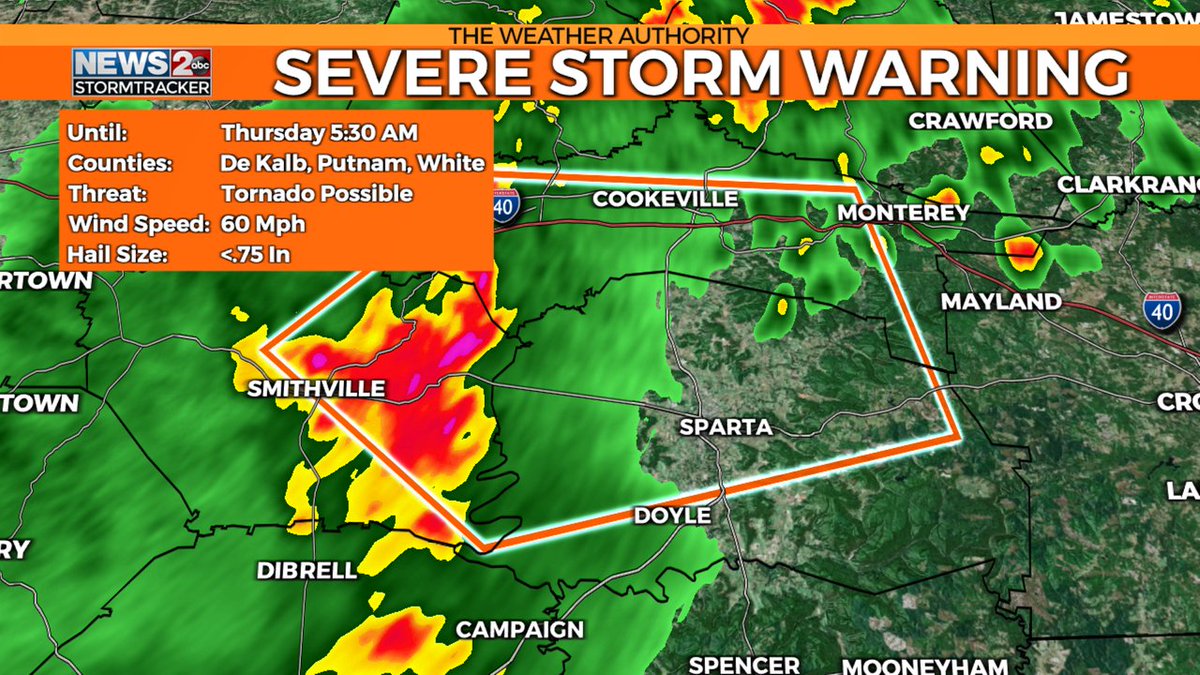 WEATHER ALERT: Severe T'Storm Warning for the area in orange. Stay tuned to