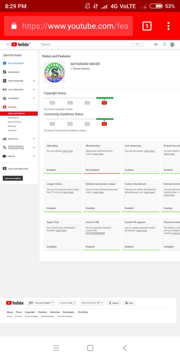 Hello @TeamYouTube My channel is completed the 4K+ hours watch time & 1K+ subscribers in previous 365 days and still my channel monetization is not enabled plz guide us. Channel link: https://www.youtube.com/channel/UCGfjLj-xgyiCdW4c8VyzrCw …