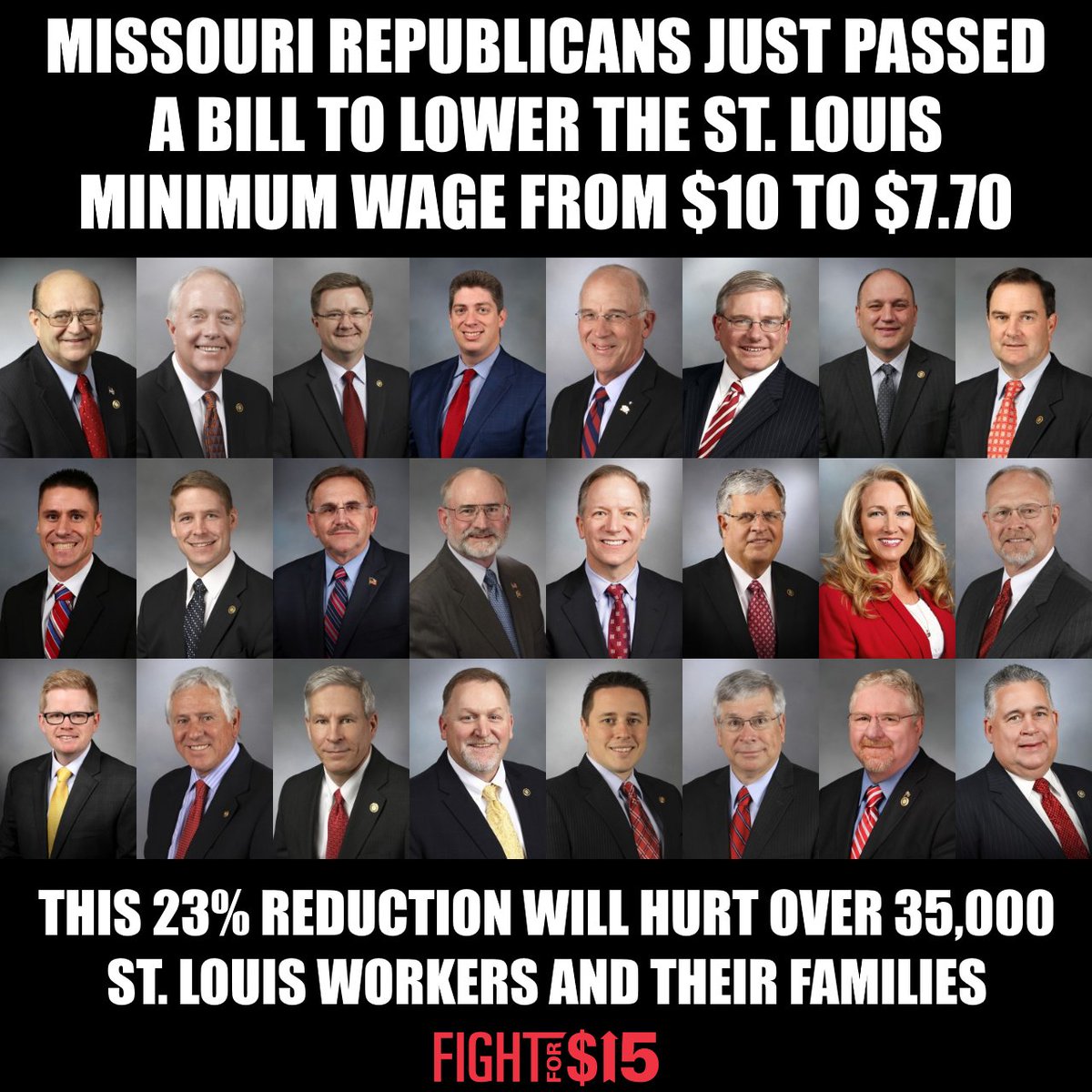 BREAKING: Republicans in Missouri have just voted to LOWER the minimum wage for tens of thousands of workers and families