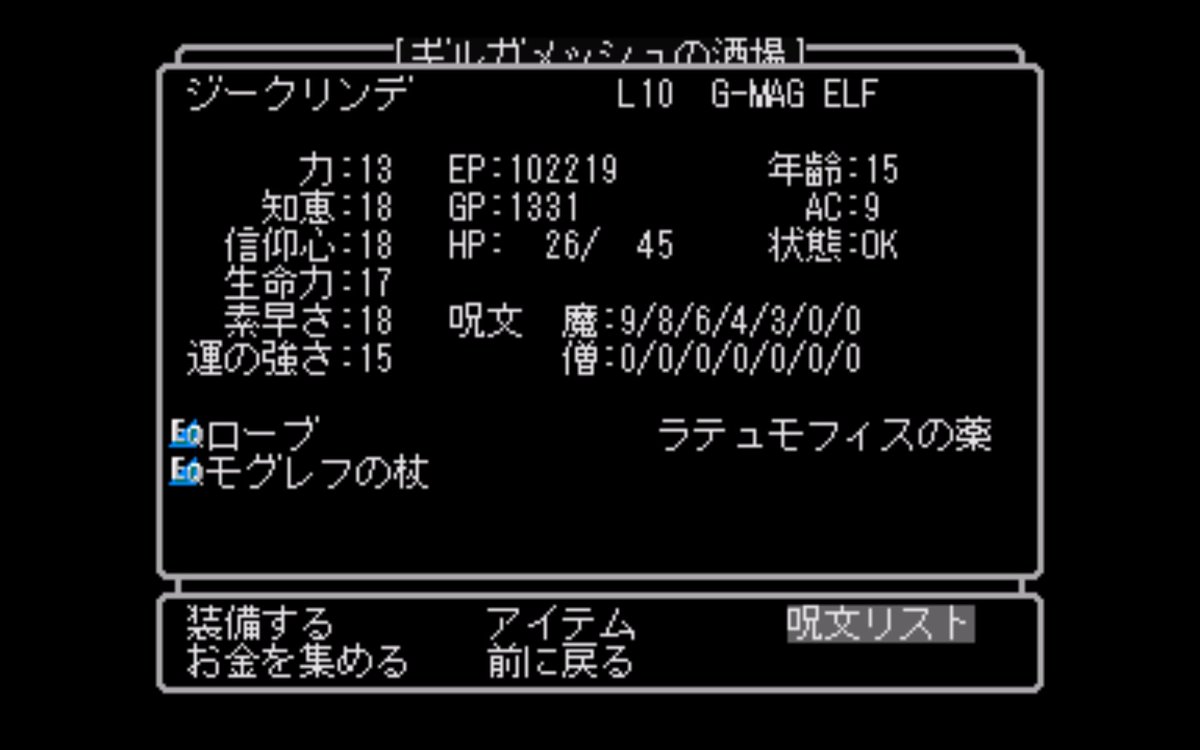 ウィザードリィリルサガ#1、地下6階でアイテム掘りとレベル上げを継続。現在レベル12でパーティ全体の武器防具は概ね+1装備に切替完了。おかげで安定感が増してきた。次のレベルまでが遠いのだけど、のんびり進めようpic.twitter.com/BDlJY2gjpV
