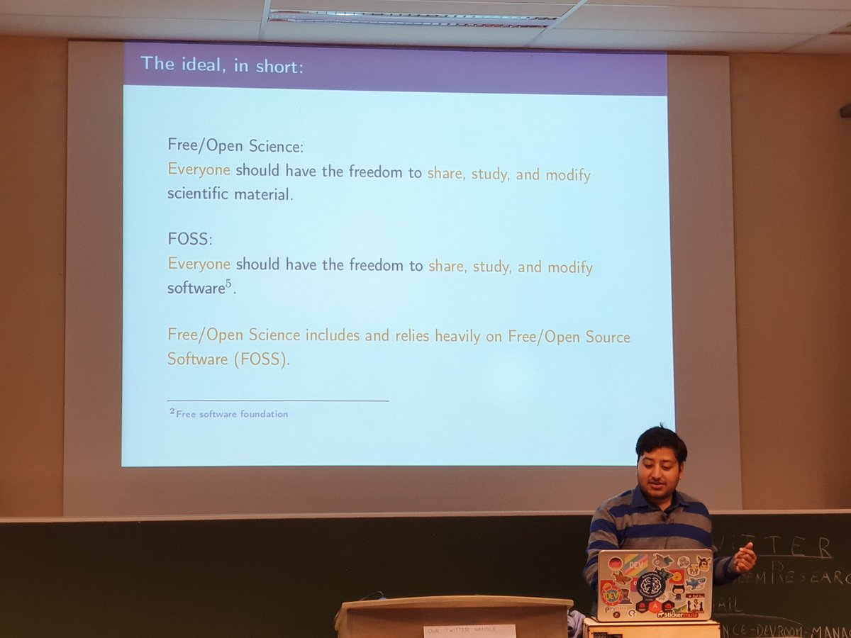 Science, but especially open science, relies upon free and open source software. Yasssss! I think the theme problem of the day may be: software isn't yet fully recognised in science and research, and often is under resourced.