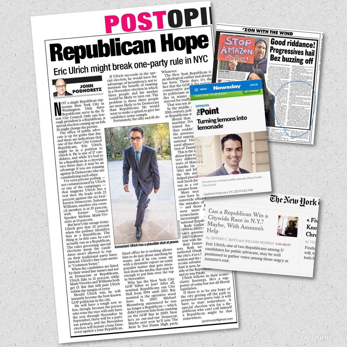 It’s been a while since the @nypost & @nytimes and even @newsday / @amNewYork agreed that a non-Democrat had a great chance to win Citywide. @amazon May have given @eric_ulrich that path. #commonsense #specialelection #Feb26pic.twitter.com/62uifZQ2mm