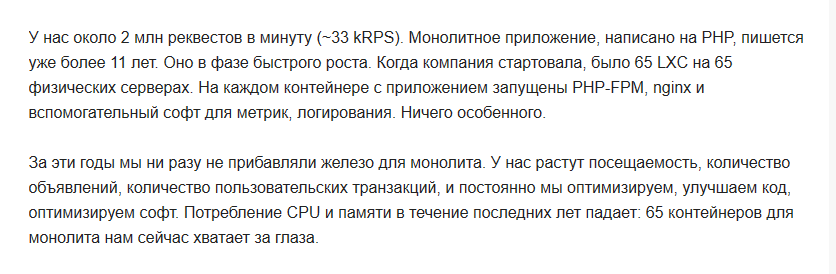 Из Авито пишут про один из продуктов. RPC не нужен вообще, просто масштабируют монолитpic.twitter.com/kilKD7Z7N1