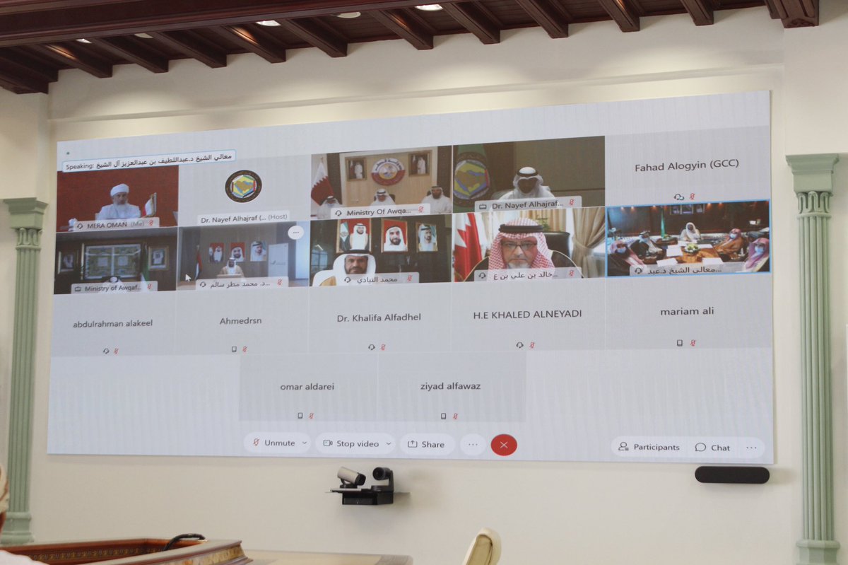 شارك معالي الشيخ عبدالله بن محمد السالمي الموقر صباح اليوم في اجتماع وزراء الأوقاف والشؤون الإسلامية بدول مجلس التعاون لدول الخليج العربية عبر الاتصال المرئي.