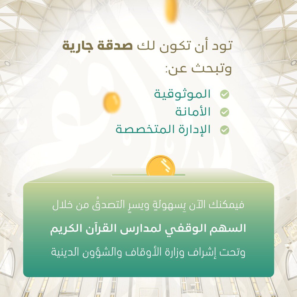 #يحدث_الآن إطلاق مشروع السهم الوقفي لمدارس القرآن الكريم والذي يهدف لتطوير المدارس القرآنية والبرنامج الإلكتروني لتعليم القران الكريم عن بعد (http://www.quran.mara.gov.om ) وفق رؤية متطورة ومتكاملة مع#رؤية_عُمان_2040 وليحقق المشروع أهدافه المستدامة في خدمة كتاب الله عزوجل وتعليمه.pic.twitter.com/NTPpTEB3KKهذه الوسائط قد تحتوي على مواد حسّاسة. معرفة المزيد