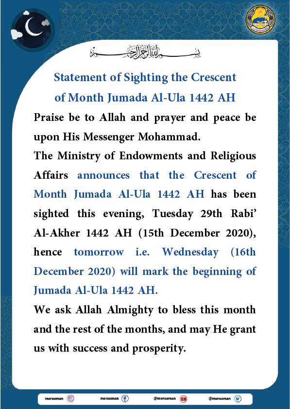 Statement of Sighting the Crescent of Month Jumada Al-Ula 1442 AHpic.twitter.com/6zUpdr5jQA