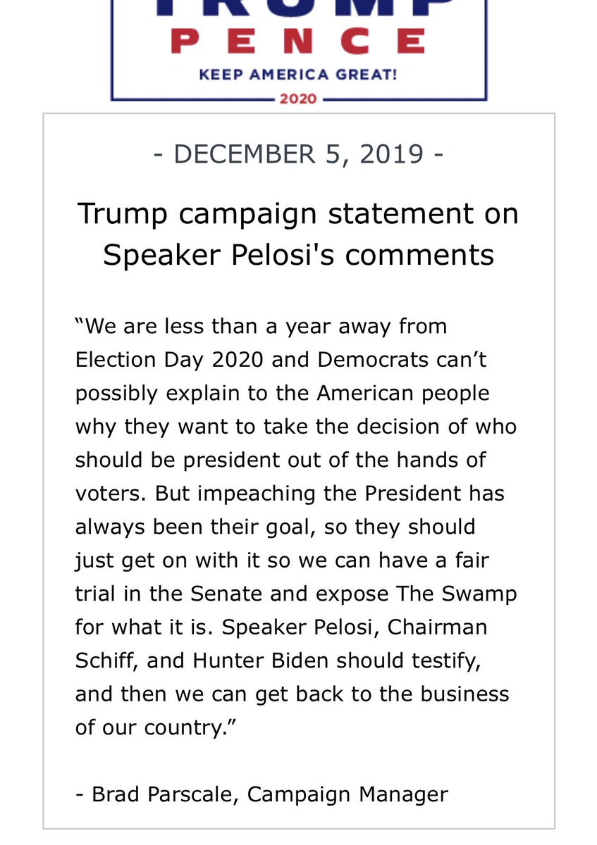 If @parscale wants the vote now, all the more reason to drag it out to next year so that @HouseDemocrats get #TrumpTaxTeturns and add in #MoneyLaundering, #RICOFraud, and #EmolumentsClause violations to the existing #BriberyAndExtortion charges.
