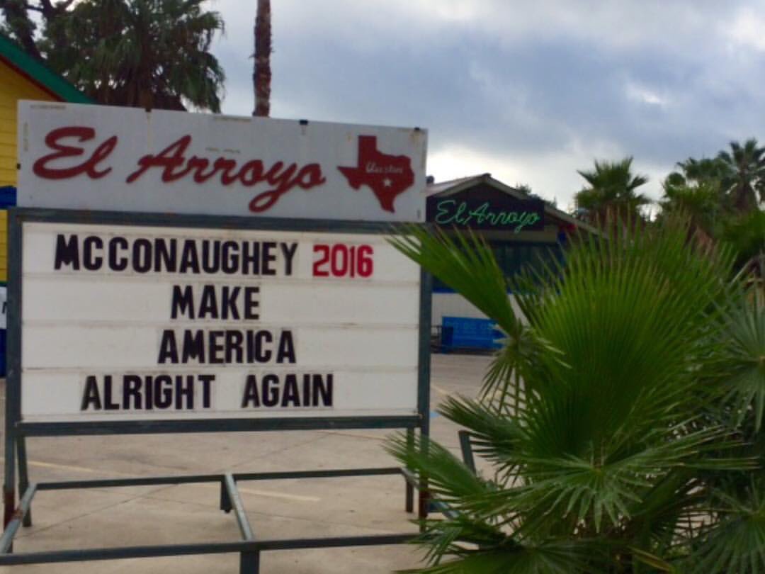 The El Arroyo sign welcoming Trump into Austin tonight https://www.facebook.com/elarroyoaustin/posts/1091320214284856:0 …pic.twitter.com/uSn1yEymra