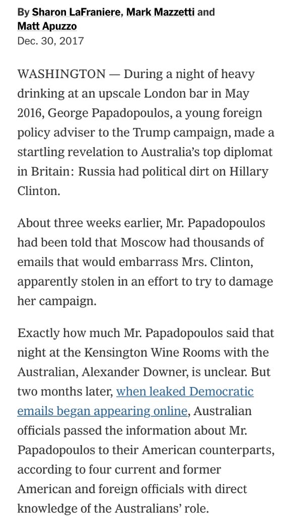 How the Russia Inquiry Began, per the @nytimes: some Aussies raised their eyebrows after hearing talks of Russian dirt on Clinton at Kensington Wine Rooms, a bar near Notting Hill Gate 🍷 👀💂🏻‍♀️ https://www.nytimes.com/2017/12/30/us/politics/how-fbi-russia-investigation-began-george-papadopoulos.html …pic.twitter.com/hFiNnGpDHm