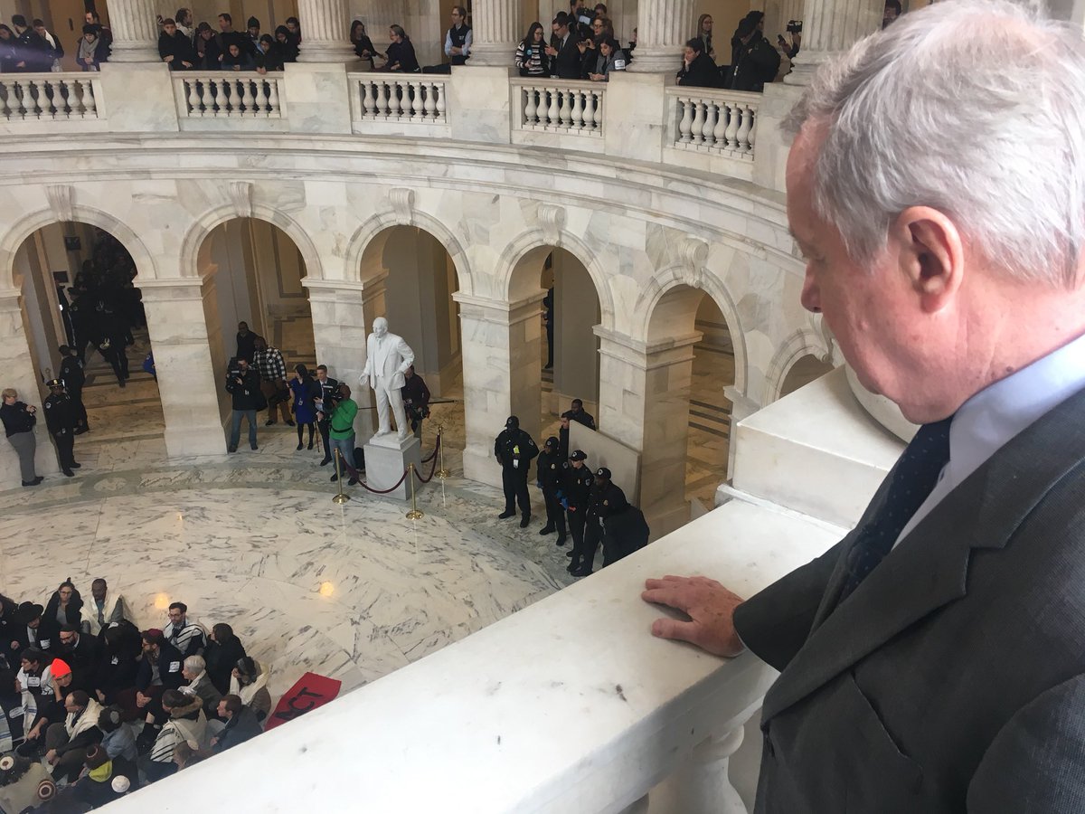 .@SenatorDurbin watches the demonstration for a clean Dream Act in Russell Rotunda below:pic.twitter.com/YqoEX7S4iz
