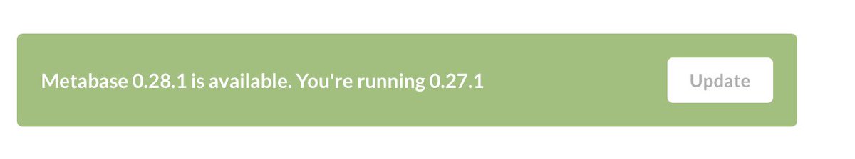 @metabase Hi, when I click update here it sends me to http://metabase.com/start instead of updating... How can I update? I'm running metabase on elastic beanstalkpic.twitter.com/gv2Q2sLyZB
