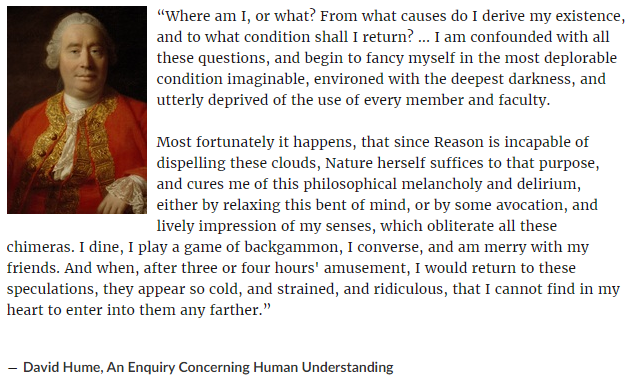 I think for a certain type of person that takes ideas super seriously, the causality can flow from ideas to depression. I felt it a bit in undergrad when I first encountered Descartes and similar ideas. But ultimately in my case, Hume was rightpic.twitter.com/KRhMuVlnF6
