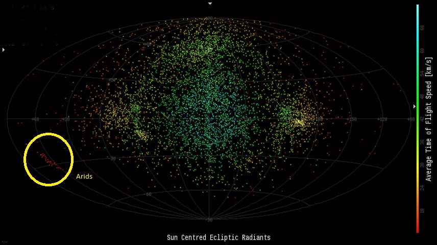 Plot below shows the 34 orbits detected from S. Ontario for the Arid outburst