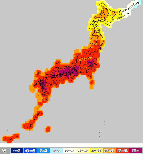 極めて危険な暑さが続きます.今日19日の最高気温は京都39℃,大阪・奈良・佐賀・久留米・日田38℃,熊谷・前橋・甲府・岐阜・名古屋・岡山・山口・熊本37℃ほか広く猛暑日に.熱中症の犠牲者が増えています.命を守る為に必ず対策・予防を.異変を見逃さず,もしもの時は適切な応急処置をして下さい.pic.twitter.com/XItFiAzKiz
