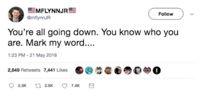 Are you sure you want to view these Tweets? Viewing Tweets won't unblock @mflynnJR
