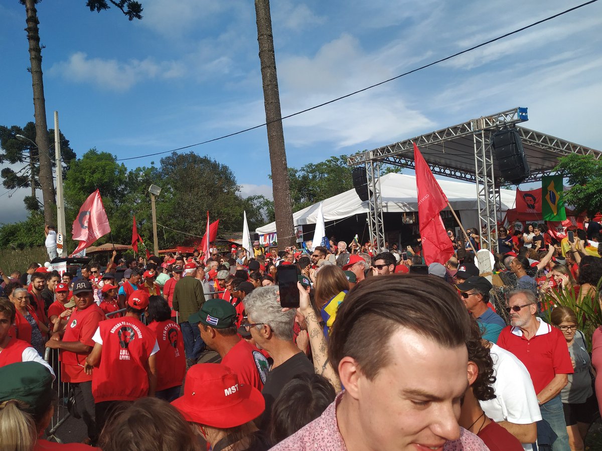 Lula supporters waiting for Lula outside of the federal prison. The judge approved his release. He should be leaving the building any minute #Brazil #LulaLivrepic.twitter.com/YCwyfxT0X7