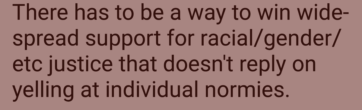 But I just want to add that it is toxic to assume a "normie" that can be reached and educated and brought to the light.