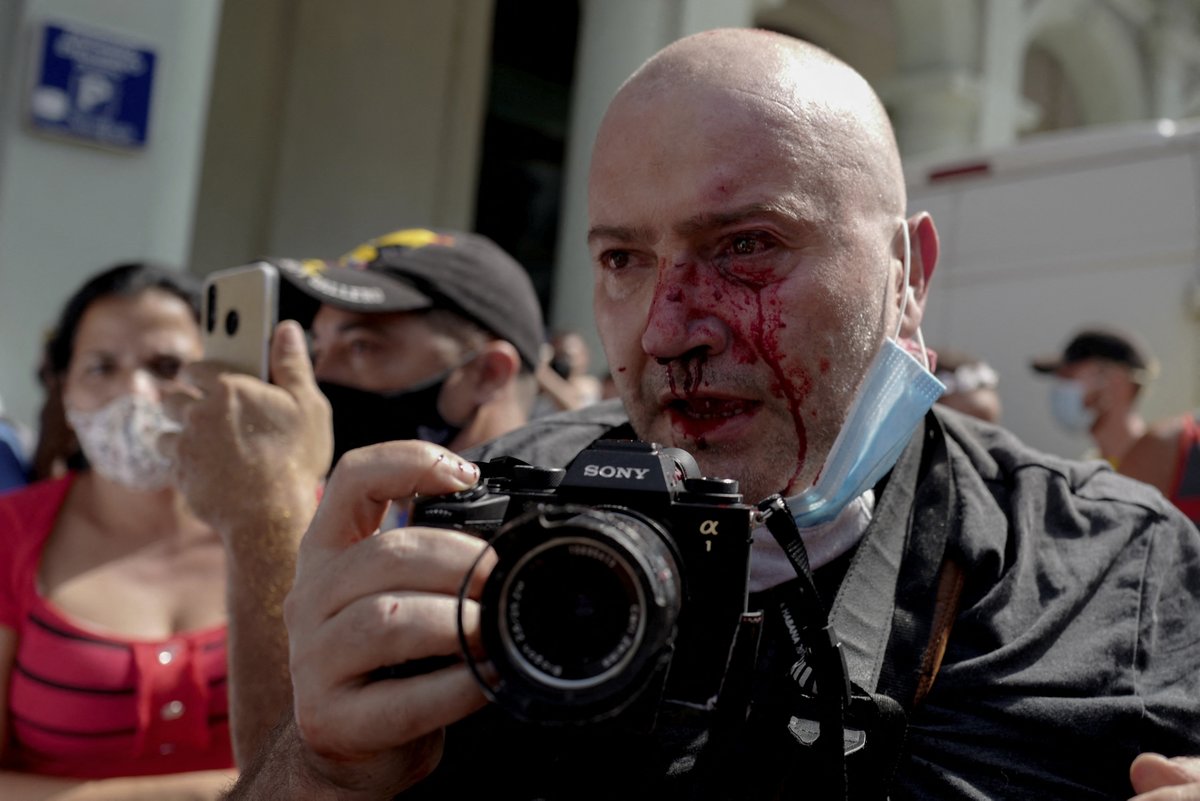 @AP_respinosa) de la agencia@AP fue herido en la cara mientras cubría en#LaHabana las protestas contra el régimen. Los cubanos llevan varias horas en las calles al grito de “queremos libertad”.