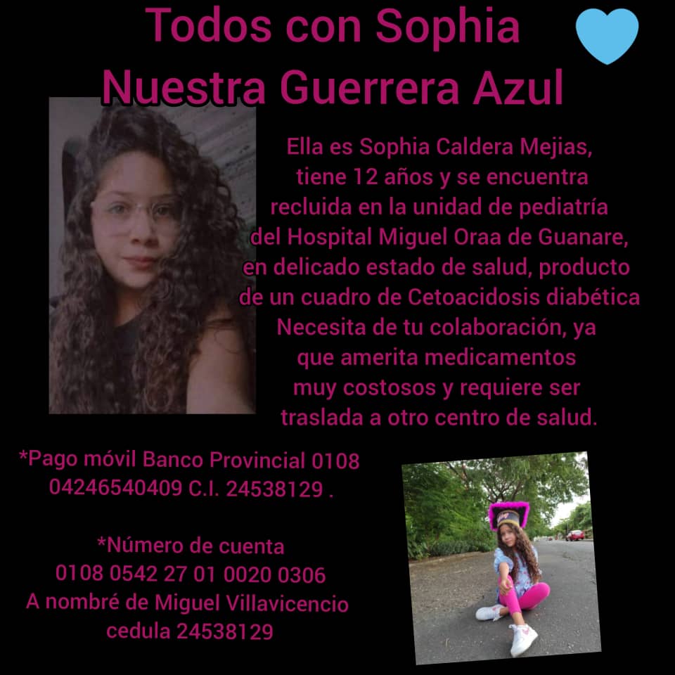 #ServicioPublico#Urgente Ayudemos todos a la niña Sophía, nuestra guerrera azul. Se necesitan recursos para costear tratamiento médico. Tu aporte será muy valioso Gracias por el apoyo Más información
