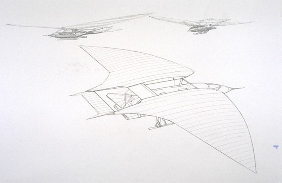 This 1981 Ralph McQuarrie sketch of an air taxi on the grass-covered rebel hideout planet of Sicemon (later the basis for Lothal in