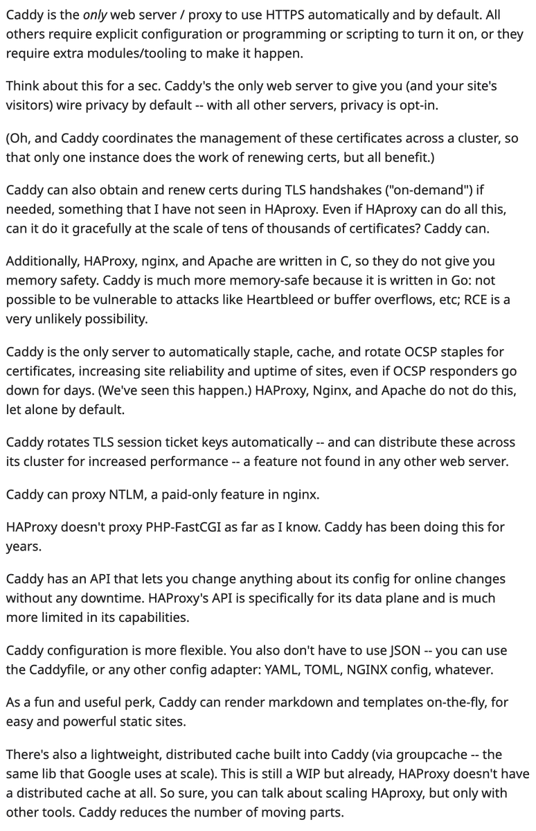 "Why would I use Caddy instead of ____" Let me give you just a few reasons, but some of these should be compelling enough on their ownpic.twitter.com/C9dF1kfJdg
