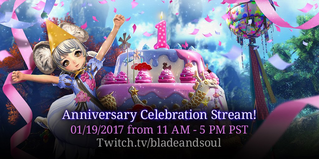 We're having a BIG celebration for Blade & Soul's first birthday! Tune in for our 6 hour stream this Thursday.https://twitter.com/bladeandsoul/status/821146004120600577 …