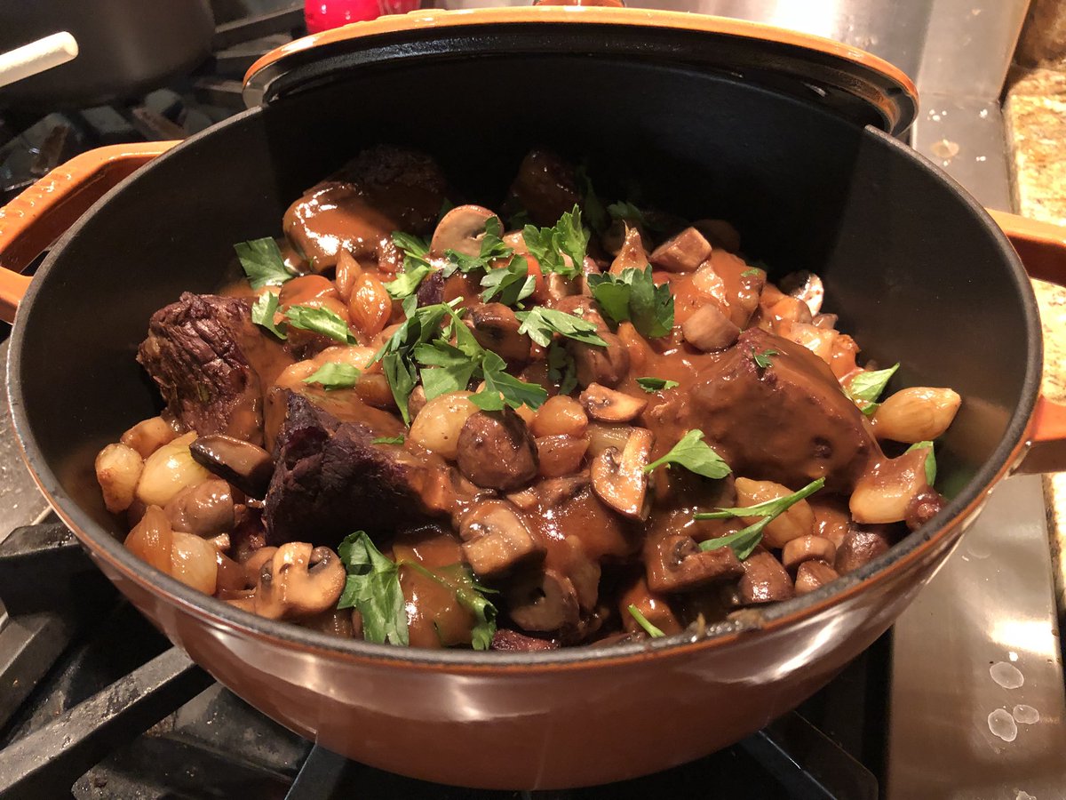 We watched “Julie and Julia” and then I happened to get a Staub dutch oven for Christmas, so I of course had to make Julia Child’s Boeuf Bourguignon.pic.twitter.com/pzG9hKCk6m