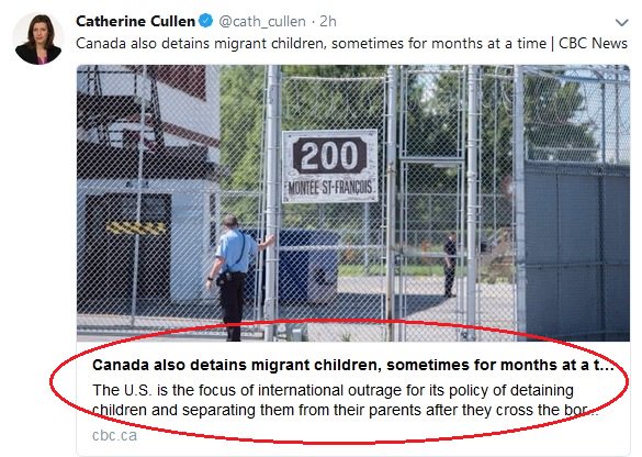 CBC headline this morning: Canada also detains migrant children, sometimes for months at a time