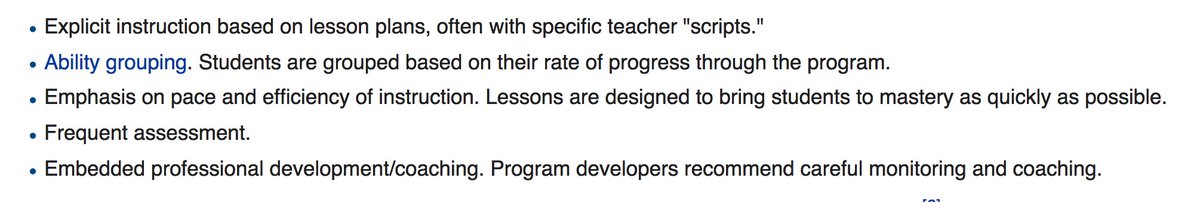Features of Direct Instruction include: frequent assessment, grouping of students by ability, specific teacher scripts, careful monitoring https://en.wikipedia.org/wiki/Direct_instruction …pic.twitter.com/DlV6034SZ2