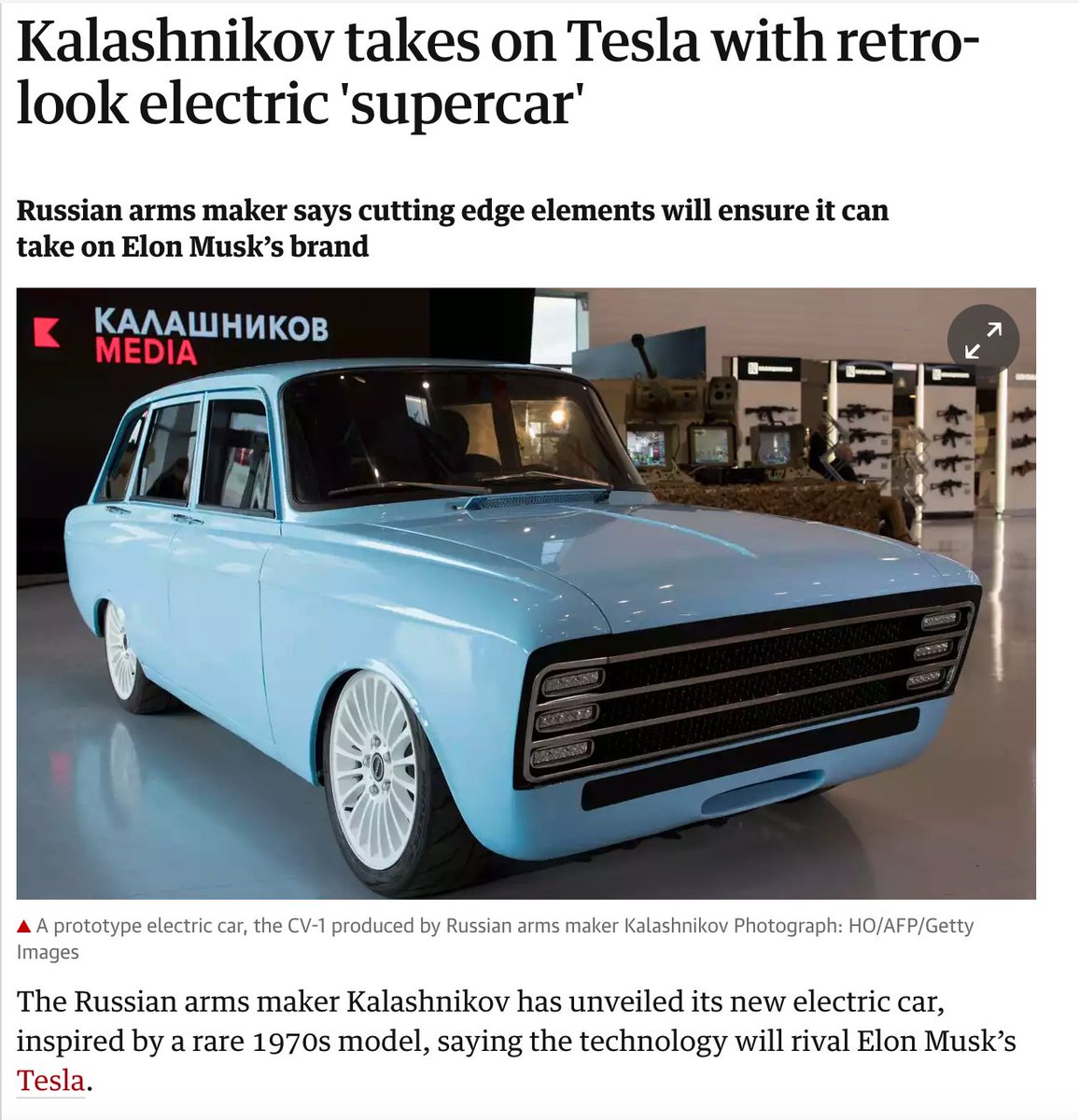 Machine-gun maker Kalashnikov appears to have hired the designer of the Edsel to take on Tesla: https://www.theguardian.com/environment/2018/aug/23/kalashnikov-takes-on-tesla-with-retro-look-electric-supercar …pic.twitter.com/4l7tT5KxlG