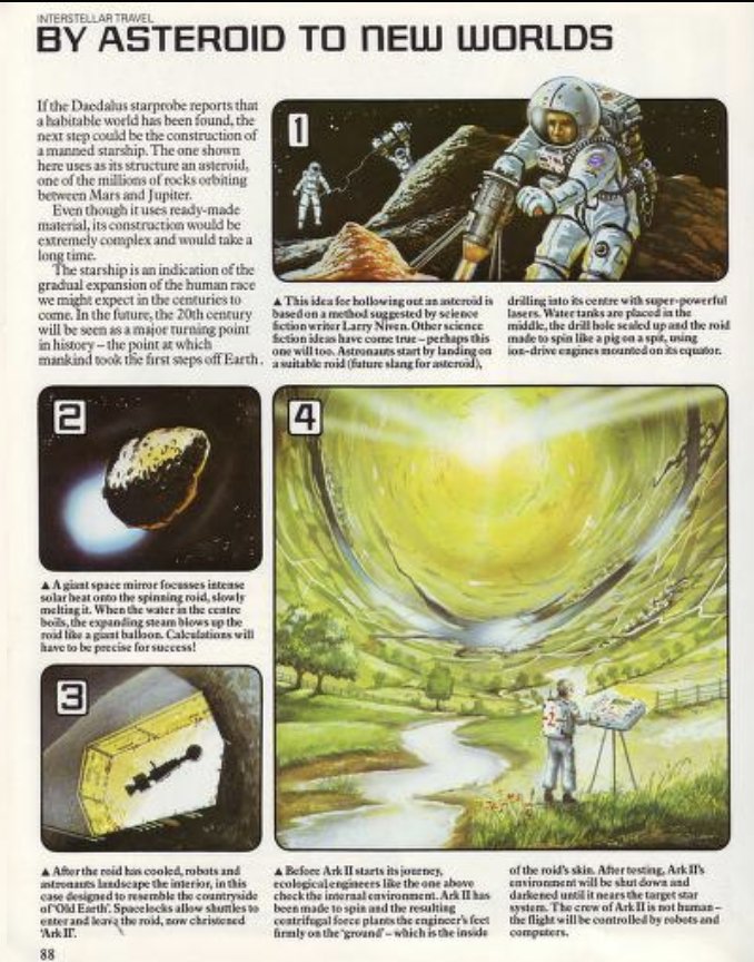 The bits I loved most as a kid were the bits about hollowing out an asteroid and using it as a generation ship to visit other starspic.twitter.com/QnDIgG3Aie