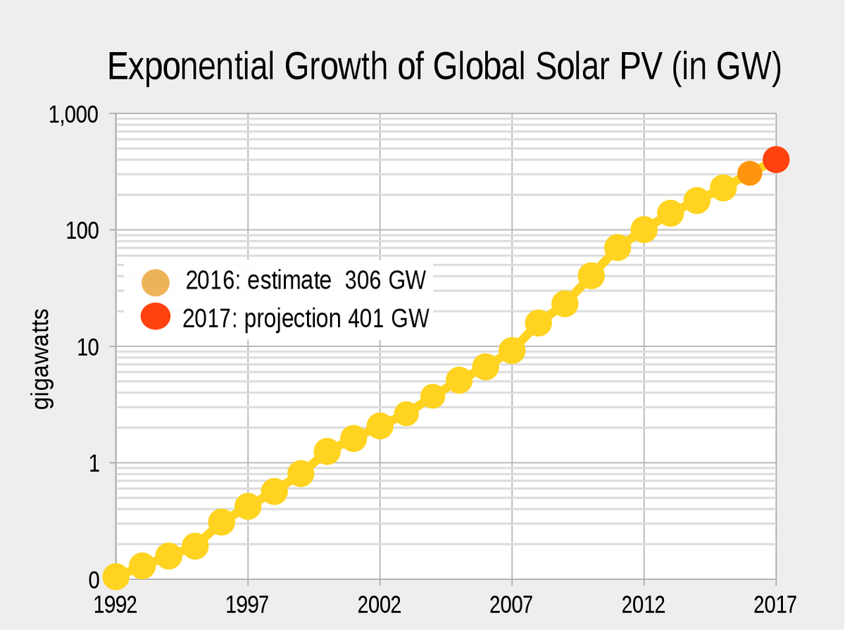 Eventually sooner or later you'll run out of quality sites for Solar PV power generation on Earth so one expects curve to flat-line in the future. Law of diminishing returns apply.