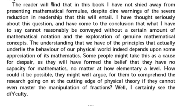 The whole book is like that, alternating the impenetrable with the wonderfully illuminating. It may be the best popular book about physics ever written for professors of theoretical physics. And I think - though cannot be sure - it's pretty great (in places) for most humans!