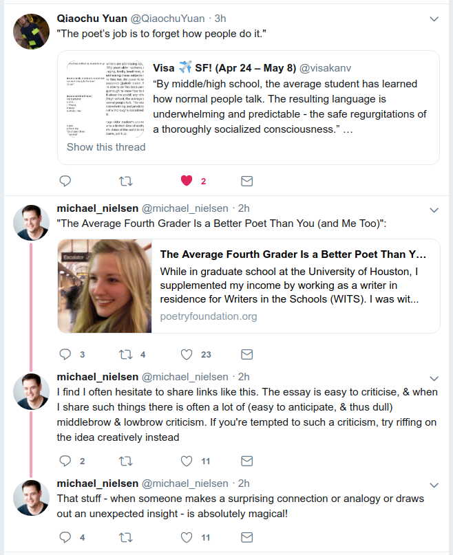 I notice a certain resemblance between those poetry snippets and a partially-trained GPT-2-poetry.