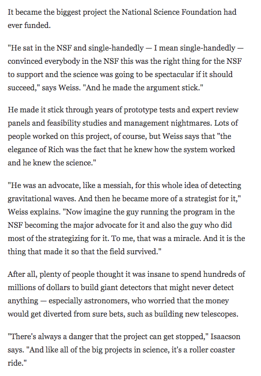 The incredible story of the funder Rich Isaacson who convinced the @NSF to fund @LIGO: https://www.npr.org/2019/05/19/723326933/billion-dollar-gamble-how-a-singular-hero-helped-start-a-new-field-in-physics?fbclid=IwAR28fazRNhzzT5ijMINwzZkNqlP6fEfBlI4OLyY-eesrUyOfbZfF7-P4qUc …pic.twitter.com/KC4Kx5XatP